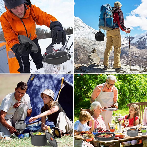 Kochen Sie überall mit diesem vielseitigen, kompakten und leichten Kochgeschirr-Set, ideal für Zuhause, Reisen und Outdoor-Abenteuer.
