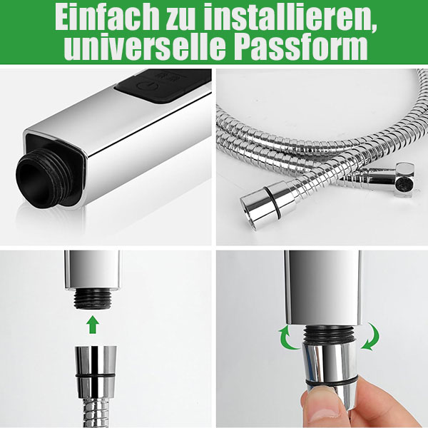 Passt in Sekundenschnelle an jeden Standard-Schlauch—keine Werkzeuge, kein Aufwand. Innovative Silikondüsen verhindern Kalkablagerungen und halten den Wasserfluss stark und konstant.