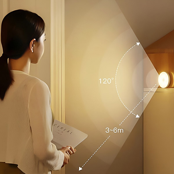 Sind Sie schon einmal in einen dunklen Flur gegangen und haben sich gewünscht, das Licht würde einfach angehen? Mit einem Erfassungswinkel von 120° und einer Reichweite von 3-6 Metern sorgt diese Lampe für eine umfassende Abdeckung und leuchtet sofort auf, wenn eine Bewegung erkannt wird, und schaltet sich nach 20-30 Sekunden Inaktivität wieder aus.