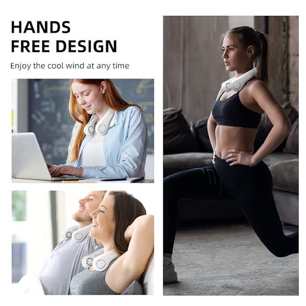Der Ventilator kann bequem um den Hals gehängt werden und ermöglicht so ein freihändiges Arbeiten. Dieses praktische Gerät hält dich an heißen Tagen und Abenden kühl und erfrischend.